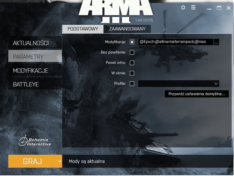 6.W polu modyfikacje wpisujemy: @Epoch;@allinarmaterrainpack;@mas Regulamin: